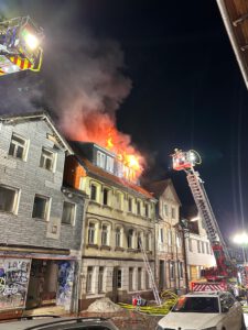 Wir wurden zur nachbarlichen Hilfe nach Helmstedt zu einem Feuer mit Menschenleben in Gefahr alarmiert. Es wurden 2 Personen aus dem Gebäude gerettet. Trotz sofort eingeleiteten Löschmaßnahmen breitete sich das Feuer auf das gesamte Gebäude aus. Aufgrund der Einsturzgefahr konnte nur noch von außen gelöscht werden. Im Einsatz waren zahlreiche Feuerwehren aus dem Stadtgebiet und dem Landkreis Helmstedt. Außerdem noch das THW, DRK und eine Kraneinheit der Berufsfeuerwehr Braunschweig. Wir konnten bereits am Abend des 15.01.2026 wieder Einrücken und waren gegen 23:00 wieder mit einem voll bestückten Fahrzeug einsatzbereit. Da immer wieder kleinere Glutnester aufflammten, wurde am Abend des 16.01.2026 damit begonnen das Gebäude kontrolliert abzureißen.