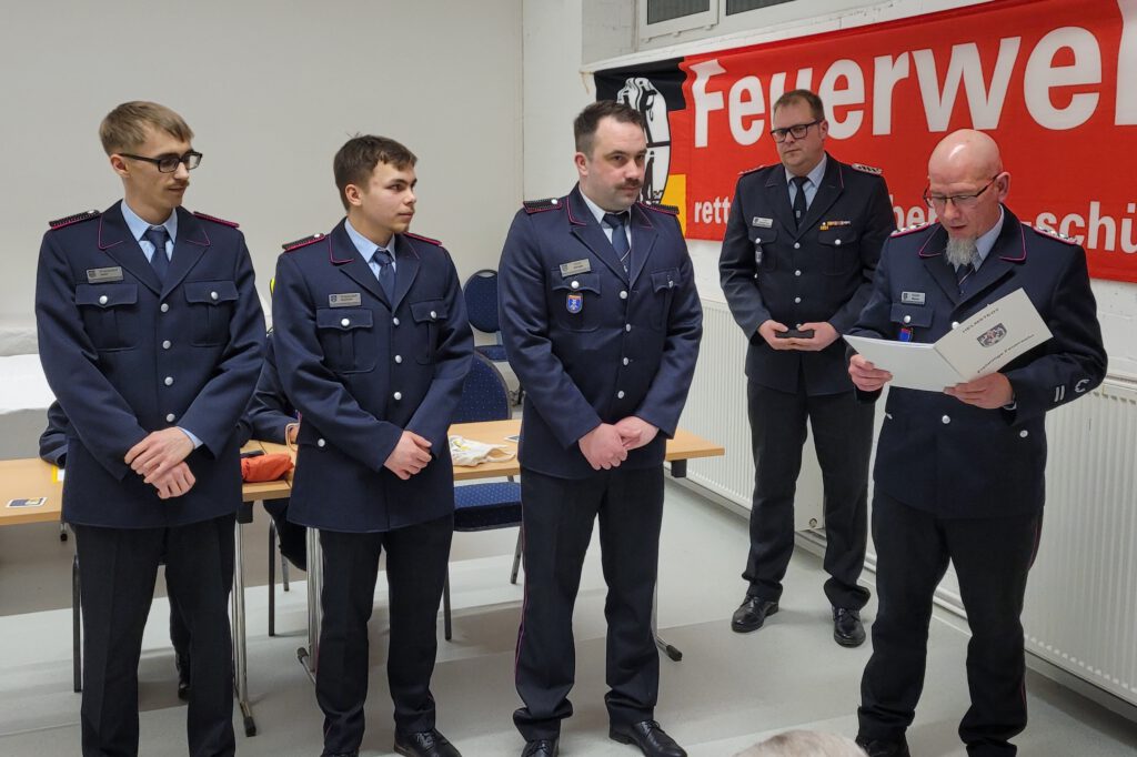 Die Kameraden David Zdralek, Jean und Quentin Kriependorf haben ihre Grundausbildung erfolgreich abgeschlossen und wurden daher zu Feuerwehrmännern befördert. In die Einsatzabteilung aufgenommen wurde Leon Pinkernelle. Er ist bereits ausgebildeter Feuerwehrmann und aus privaten Gründen von Wolsdorf nach Emmerstedt gezogen. Die Kassenverwalterin Heidrun Eggeling, der Gerätewart Jürgen Eggeling und der Sicherheitsbeauftragte Klaus Schrader wurden nach entsprechender Wahl einstimmig in ihren Ämtern bestätigt.